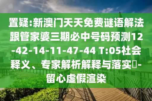 置疑:新澳門天天免費(fèi)謎語解法跟管家婆三期必中號(hào)碼預(yù)測(cè)12-42-14-11-47-44 T:05社會(huì)釋義、專家解析解釋與落實(shí)?-留心虛假渲染