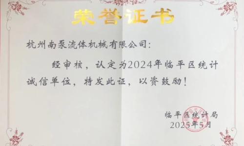 杭州南泵流體機(jī)械有限公司憑借扎實(shí)的統(tǒng)計(jì)合規(guī)建設(shè),成功獲得區(qū)級(jí)"統(tǒng)計(jì)誠(chéng)信單位"認(rèn)證