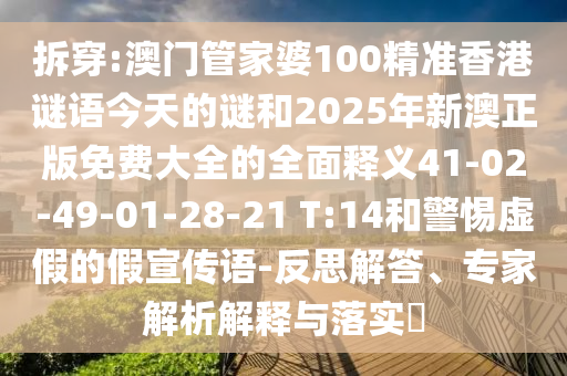 拆穿:澳門管家婆100精準香港謎語今天的謎和2025年新澳正版免費大全的全面釋義41-02-49-01-28-21 T:14和警惕虛假的假宣傳語-反思解答、專家解析解釋與落實?