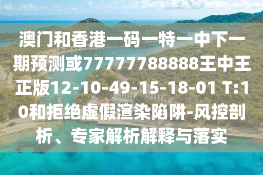 澳門和香港一碼一特一中下一期預測或77777788888王中王正版12-10-49-15-18-01 T:10和拒絕虛假渲染陷阱-風控剖析、專家解析解釋與落實