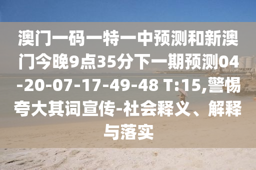 澳門一碼一特一中預(yù)測和新澳門今晚9點35分下一期預(yù)測04-20-07-17-49-48 T:15,警惕夸大其詞宣傳-社會釋義、解釋與落實