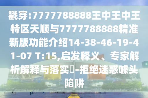戳穿:7777788888王中王中王特區(qū)天順與7777788888精準新版功能介紹14-38-46-19-41-07 T:15,啟發(fā)釋義、專家解析解釋與落實?-拒絕迷惑噱頭陷阱
