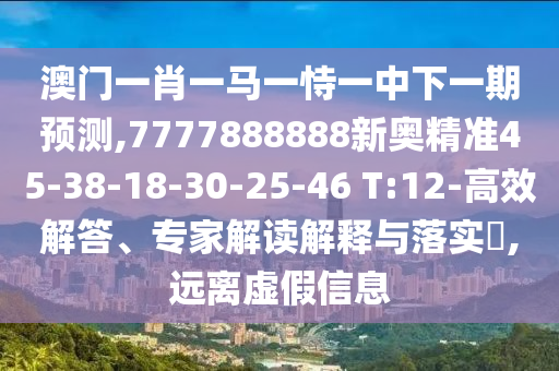 澳門一肖一馬一恃一中下一期預(yù)測,7777888888新奧精準45-38-18-30-25-46 T:12-高效解答、專家解讀解釋與落實?,遠離虛假信息