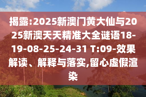 揭露:2025新澳門黃大仙與2025新澳天天精準(zhǔn)大全謎語(yǔ)18-19-08-25-24-31 T:09-效果解讀、解釋與落實(shí),留心虛假渲染