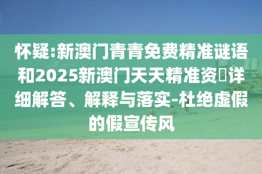 懷疑:新澳門青青免費(fèi)精準(zhǔn)謎語和2025新澳門天天精準(zhǔn)資枓詳細(xì)解答、解釋與落實(shí)-杜絕虛假的假宣傳風(fēng)