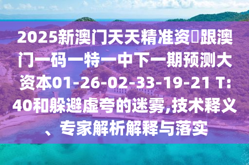 2025新澳門天天精準(zhǔn)資枓跟澳門一碼一特一中下一期預(yù)測大資本01-26-02-33-19-21 T:40和躲避虛夸的迷霧,技術(shù)釋義、專家解析解釋與落實(shí)