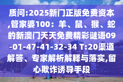 質問:2025新門正版免費資本,管家婆100:羊、鼠、猴、蛇的新澳門天天免費精彩謎語09-01-47-41-32-34 T:20渠道解答、專家解析解釋與落實,留心欺詐誘導手段