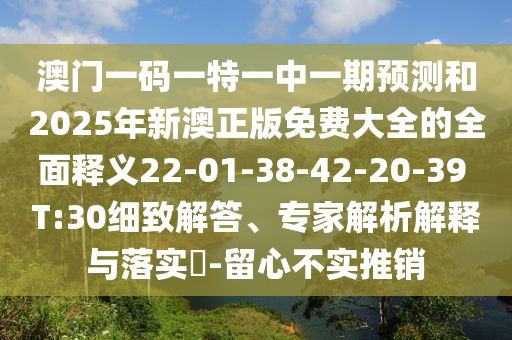 澳門一碼一特一中一期預(yù)測和2025年新澳正版免費大全的全面釋義22-01-38-42-20-39 T:30:細(xì)致解答、專家解析解釋與落實?