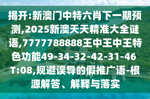揭開:新澳門中特六肖下一期預測,2025新澳天天精準大全謎語,7777788888王中王中王特色功能49-34-32-42-31-46 T:08,規(guī)避誤導的假推廣語-根源解答、解釋與落實