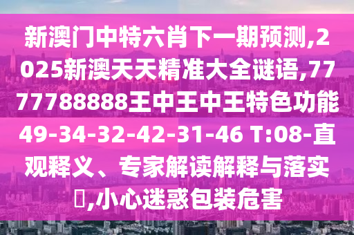 新澳門中特六肖下一期預(yù)測,2025新澳天天精準(zhǔn)大全謎語,7777788888王中王中王特色功能49-34-32-42-31-46 T:08-直觀釋義、專家解讀解釋與落實(shí)?,小心迷惑包裝危害