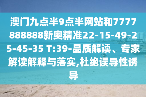 澳門九點(diǎn)半9點(diǎn)半網(wǎng)站和7777888888新奧精準(zhǔn)22-15-49-25-45-35 T:39-品質(zhì)解讀、專家解讀解釋與落實,杜絕誤導(dǎo)性誘導(dǎo)