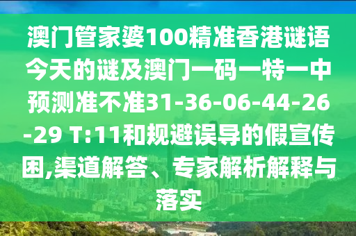 澳門管家婆100精準(zhǔn)香港謎語今天的謎及澳門一碼一特一中預(yù)測準(zhǔn)不準(zhǔn)31-36-06-44-26-29 T:11和規(guī)避誤導(dǎo)的假宣傳困,渠道解答、專家解析解釋與落實