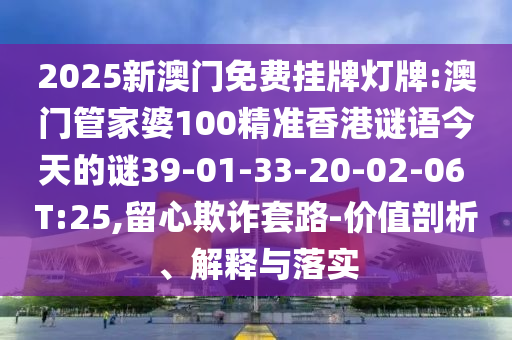 2025新澳門(mén)免費(fèi)掛牌燈牌:澳門(mén)管家婆100精準(zhǔn)香港謎語(yǔ)今天的謎39-01-33-20-02-06 T:25,留心欺詐套路-價(jià)值剖析、解釋與落實(shí)