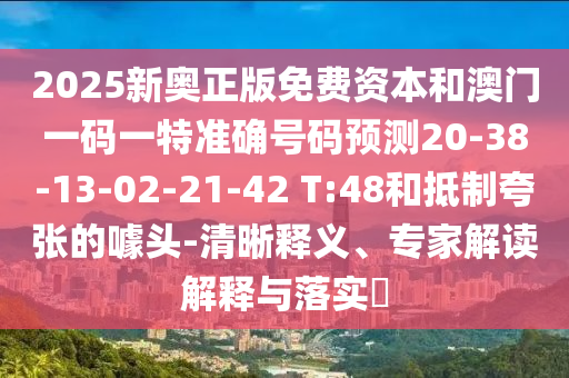 2025新奧正版免費資本和澳門一碼一特準確號碼預測20-38-13-02-21-42 T:48和抵制夸張的噱頭-清晰釋義、專家解讀解釋與落實?