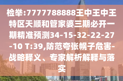 關于檢舉號碼“7777788888王中王中王特區(qū)天順和管家婆三期必開一期精準預測34-15-32-22-27-10 T:39”的戰(zhàn)略釋義、專家解析解釋與落實及防范虛假宣傳危害的探討