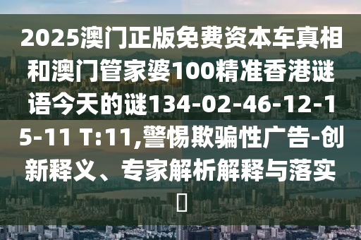 2025澳門正版免費資本車真相和澳門管家婆100精準香港謎語今天的謎134-02-46-12-15-11 T:11,警惕欺騙性廣告-創(chuàng)新釋義、專家解析解釋與落實?