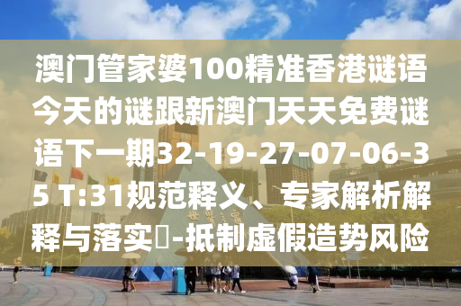 澳門管家婆100精準(zhǔn)香港謎語今天的謎跟新澳門天天免費謎語下一期32-19-27-07-06-35 T:31規(guī)范釋義、專家解析解釋與落實?-抵制虛假造勢風(fēng)險