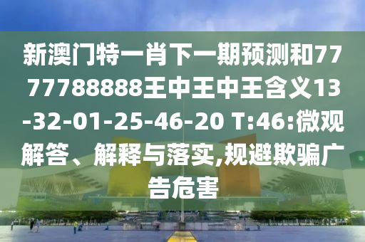 新澳門特一肖下一期預(yù)測和7777788888王中王中王含義13-32-01-25-46-20 T:46:微觀解答、解釋與落實(shí),規(guī)避欺騙廣告危害