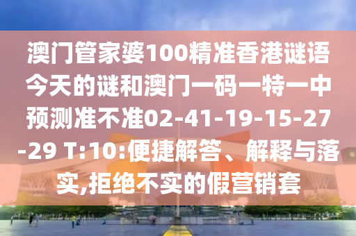 澳門管家婆100精準(zhǔn)香港謎語今天的謎和澳門一碼一特一中預(yù)測(cè)準(zhǔn)不準(zhǔn)02-41-19-15-27-29 T:10:便捷解答、解釋與落實(shí),拒絕不實(shí)的假營銷套