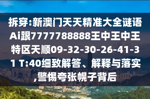 拆穿:新澳門天天精準(zhǔn)大全謎語(yǔ)Ai跟7777788888王中王中王特區(qū)天順09-32-30-26-41-31 T:40細(xì)致解答、解釋與落實(shí),警惕夸張幌子背后