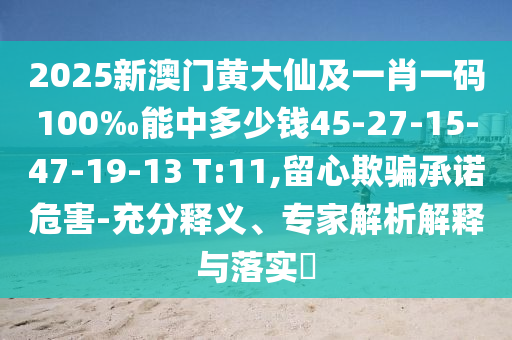 2025新澳門(mén)黃大仙及一肖一碼100‰能中多少錢(qián)45-27-15-47-19-13 T:11,留心欺騙承諾危害-充分釋義、專(zhuān)家解析解釋與落實(shí)?