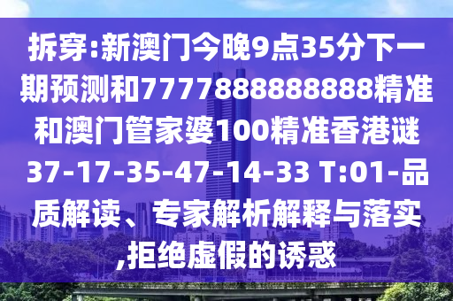 拆穿:新澳門今晚9點(diǎn)35分下一期預(yù)測(cè)和7777888888888精準(zhǔn)和澳門管家婆100精準(zhǔn)香港謎37-17-35-47-14-33 T:01-品質(zhì)解讀、專家解析解釋與落實(shí),拒絕虛假的誘惑