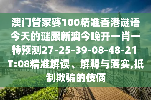 澳門管家婆100精準香港謎語今天的謎跟新澳今晚開一肖一特預測27-25-39-08-48-21 T:08精準解讀、解釋與落實,抵制欺騙的伎倆
