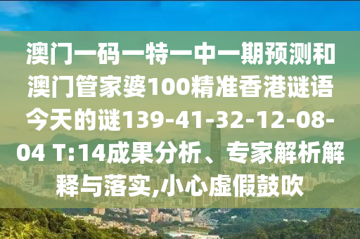 澳門一碼一特一中一期預測和澳門管家婆100精準香港謎語今天的謎139-41-32-12-08-04 T:14成果分析、專家解析解釋與落實,小心虛假鼓吹