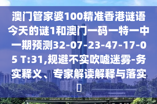 澳門(mén)管家婆100精準(zhǔn)香港謎語(yǔ)今天的謎1和澳門(mén)一碼一特一中一期預(yù)測(cè)32-07-23-47-17-05 T:31,規(guī)避不實(shí)吹噓迷霧-務(wù)實(shí)釋義、專(zhuān)家解讀解釋與落實(shí)?