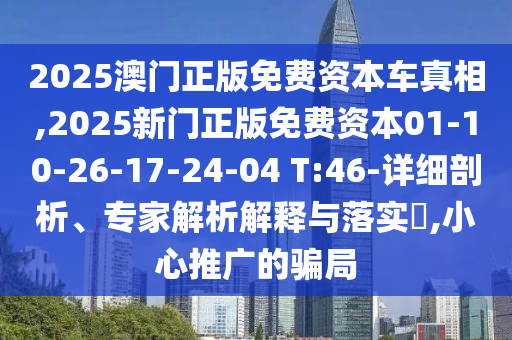 2025澳門正版免費資本車真相,2025新門正版免費資本01-10-26-17-24-04 T:46-詳細剖析、專家解析解釋與落實?,小心推廣的騙局
