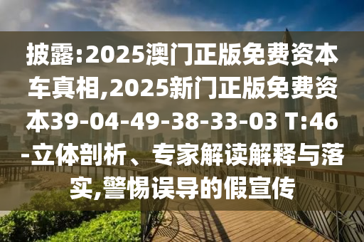 披露:2025澳門正版免費資本車真相,2025新門正版免費資本39-04-49-38-33-03 T:46-立體剖析、專家解讀解釋與落實,警惕誤導的假宣傳