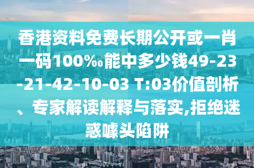 香港資料免費(fèi)長(zhǎng)期公開(kāi)或一肖一碼100‰能中多少錢(qián)49-23-21-42-10-03 T:03價(jià)值剖析、專(zhuān)家解讀解釋與落實(shí),拒絕迷惑噱頭陷阱