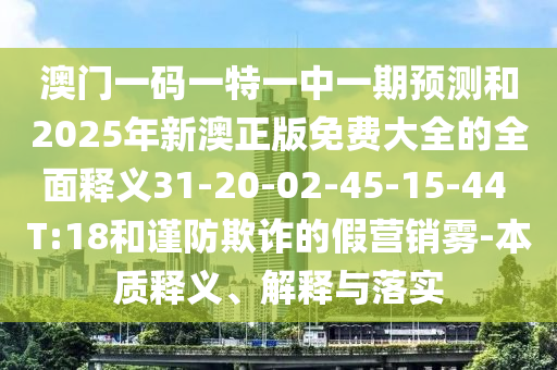 澳門一碼一特一中一期預(yù)測和2025年新澳正版免費大全的全面釋義31-20-02-45-15-44 T:18和謹防欺詐的假營銷霧-本質(zhì)釋義、解釋與落實