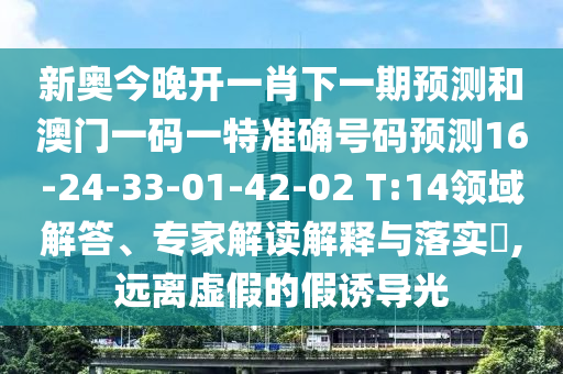 新奧今晚開一肖下一期預(yù)測(cè)和澳門一碼一特準(zhǔn)確號(hào)碼預(yù)測(cè)16-24-33-01-42-02 T:14領(lǐng)域解答、專家解讀解釋與落實(shí)?,遠(yuǎn)離虛假的假誘導(dǎo)光