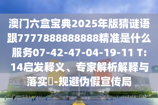 澳門六盒寶典2025年版猜謎語跟7777888888888精準(zhǔn)是什么服務(wù)07-42-47-04-19-11 T:14啟發(fā)釋義、專家解析解釋與落實?-規(guī)避偽假宣傳局