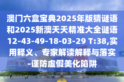 澳門六盒寶典2025年版猜謎語(yǔ)和2025新澳天天精準(zhǔn)大全謎語(yǔ)12-43-49-18-03-29 T:38,實(shí)用釋義、專家解讀解釋與落實(shí)-謹(jǐn)防虛假美化陷阱