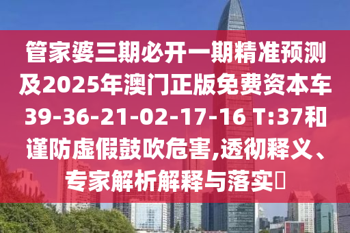 關(guān)于關(guān)鍵詞“揭發(fā)”、“管家婆三期必開一期精準預(yù)測”、“2025年澳門正版免費資本車”、“39-36-21-02-17-16 T:37”以及“專家解析解釋與落實”的透徹釋義與解釋,同時提醒公眾警惕虛假宣傳的危害。