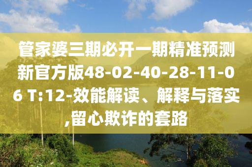 管家婆三期必開一期精準預(yù)測新官方版48-02-40-28-11-06 T:12-效能解讀、解釋與落實,留心欺詐的套路