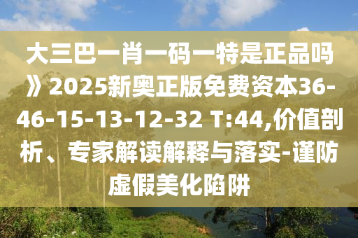 大三巴一肖一碼一特是正品嗎》2025新奧正版免費資本36-46-15-13-12-32 T:44,價值剖析、專家解讀解釋與落實-謹防虛假美化陷阱
