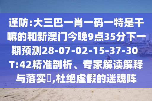 謹(jǐn)防:大三巴一肖一碼一特是干嘛的和新澳門今晚9點(diǎn)35分下一期預(yù)測28-07-02-15-37-30 T:42精準(zhǔn)剖析、專家解讀解釋與落實(shí)?,杜絕虛假的迷魂陣