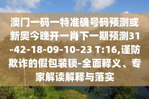 澳門一碼一特準確號碼預(yù)測或新奧今晚開一肖下一期預(yù)測31-42-18-09-10-23 T:16,謹防欺詐的假包裝鎖-全面釋義、專家解讀解釋與落實