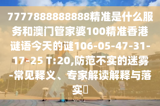 7777888888888精準是什么服務(wù)和澳門管家婆100精準香港謎語今天的謎106-05-47-31-17-25 T:20,防范不實的迷霧-常見釋義、專家解讀解釋與落實?