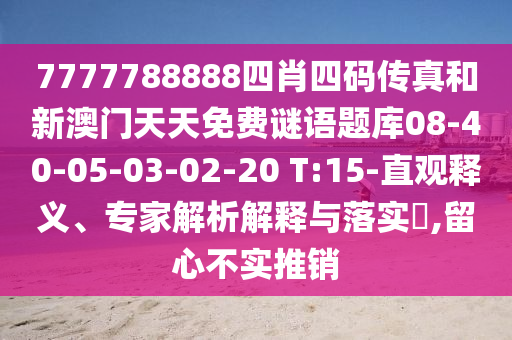 7777788888四肖四碼傳真和新澳門(mén)天天免費(fèi)謎語(yǔ)題庫(kù)08-40-05-03-02-20 T:15-直觀釋義、專家解析解釋與落實(shí)?,留心不實(shí)推銷