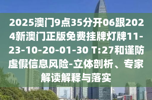 2025澳門9點35分開06跟2024新澳門正版免費(fèi)掛牌燈牌11-23-10-20-01-30 T:27和謹(jǐn)防虛假信息風(fēng)險-立體剖析、專家解讀解釋與落實