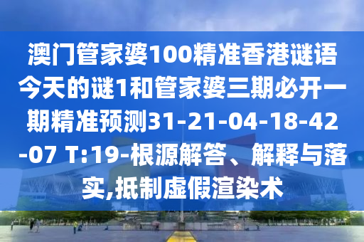 澳門管家婆100精準(zhǔn)香港謎語今天的謎1和管家婆三期必開一期精準(zhǔn)預(yù)測31-21-04-18-42-07 T:19-根源解答、解釋與落實,抵制虛假渲染術(shù)