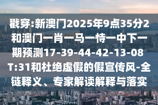 隨著互聯(lián)網(wǎng)信息的快速發(fā)展,虛假宣傳現(xiàn)象日益嚴重,給公眾生活帶來諸多困擾,針對關(guān)鍵詞“戳穿:新澳門2025年9點35分2和澳門一肖一馬一恃一中下一期預測17-39-44-42-13-08 T:31與杜絕虛假的假宣傳風”,本文將全面釋義、解釋與落實這些關(guān)鍵詞,并提醒公眾警惕虛假宣傳。