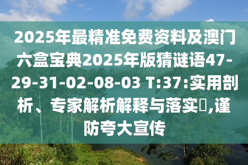 2025年最精準免費資料及澳門六盒寶典2025年版猜謎語47-29-31-02-08-03 T:37:實用剖析、專家解析解釋與落實?,謹防夸大宣傳