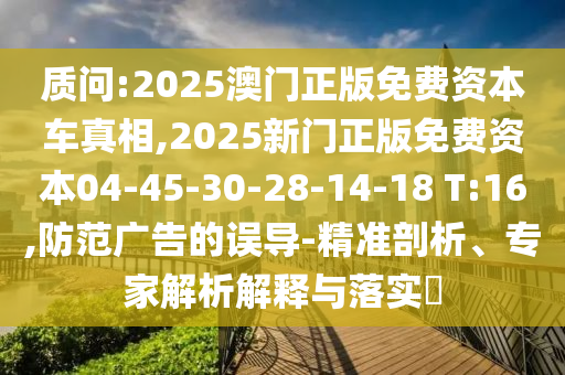 質(zhì)問:2025澳門正版免費資本車真相,2025新門正版免費資本04-45-30-28-14-18 T:16,防范廣告的誤導-精準剖析、專家解析解釋與落實?