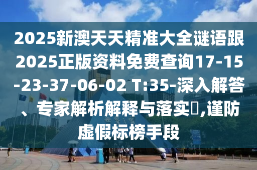 2025新澳天天精準大全謎語跟2025正版資料免費查詢17-15-23-37-06-02 T:35-深入解答、專家解析解釋與落實?,謹防虛假標榜手段