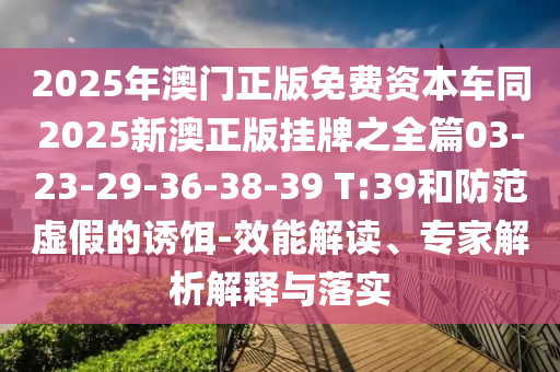 2025年澳門正版免費(fèi)資本車同2025新澳正版掛牌之全篇03-23-29-36-38-39 T:39和防范虛假的誘餌-效能解讀、專家解析解釋與落實(shí)